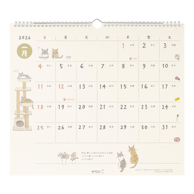 - 2026年1月始まりカレンダー 壁掛け L ネコ柄