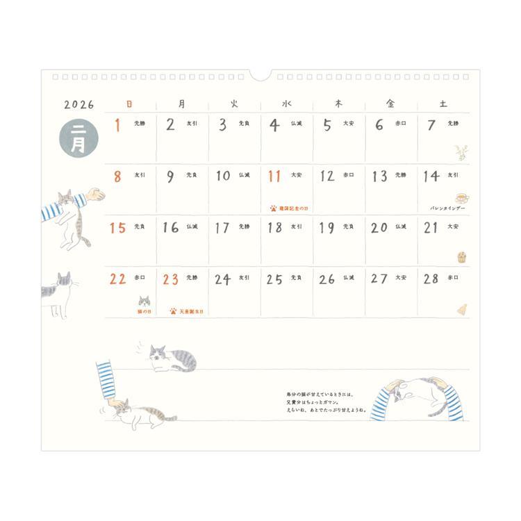 やわらかな雰囲気のネコのイラストは、生粋の猫好きであるイラストレーターの「小泉さよ」さんによる描き下ろしです。2026年版のテーマは「小泉さん家の猫たち」。