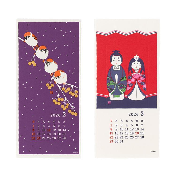 - 2026年1月始まりカレンダー 壁掛け 越前和紙 S 風物柄