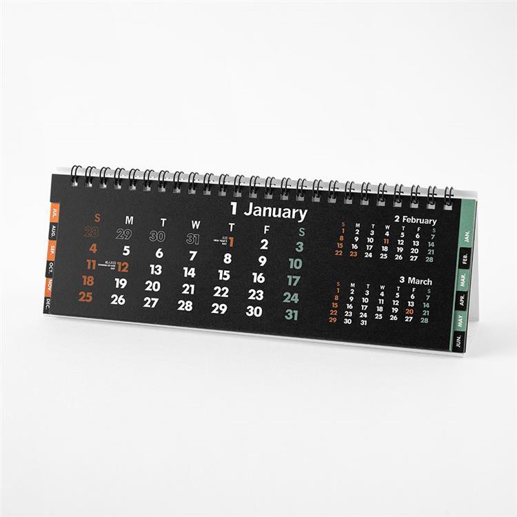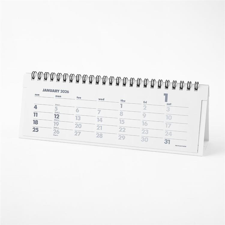 PCディスプレイの下など、限られた卓上スペースを有効に活用できるコンパクトな卓上カレンダーです。