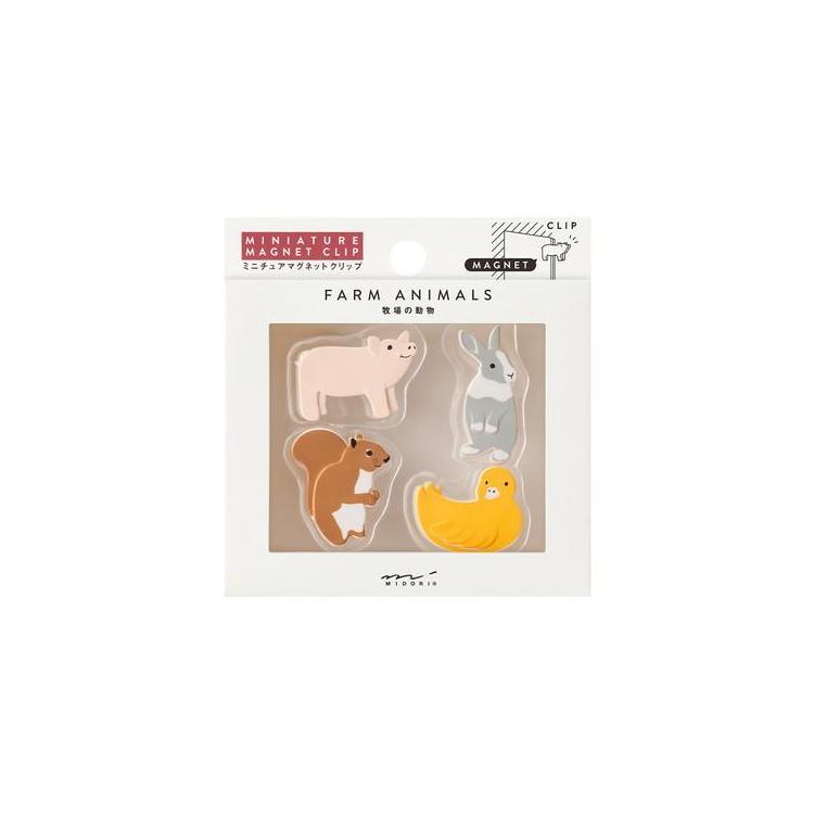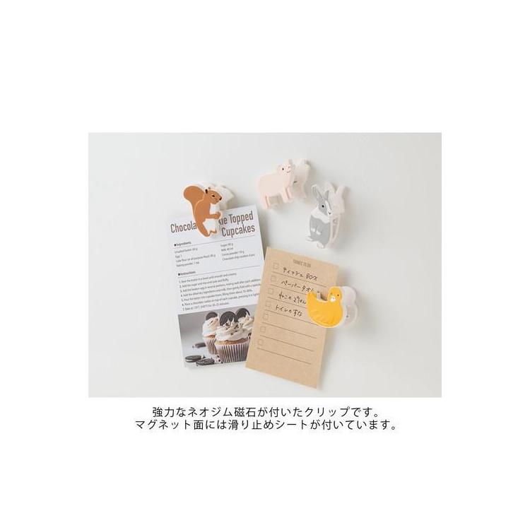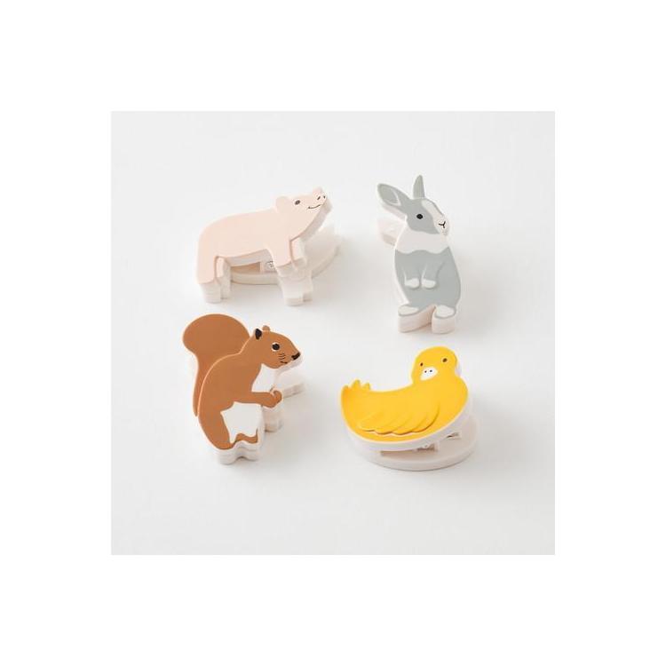 4種類のかわいい動物をアソートした、マグネット付きクリップです。