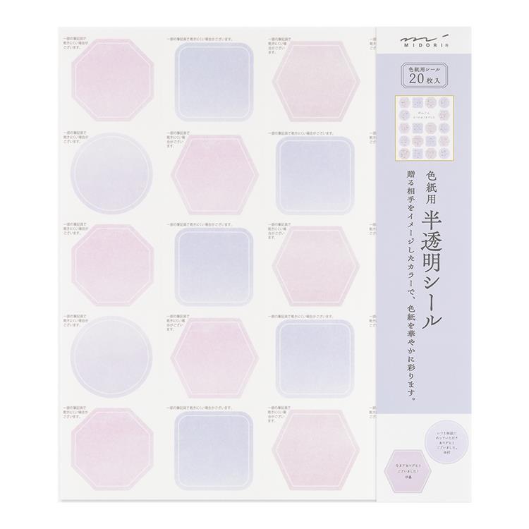 半透明のやさしい色合いで、どんな色紙にもなじむメッセージシールになっています。