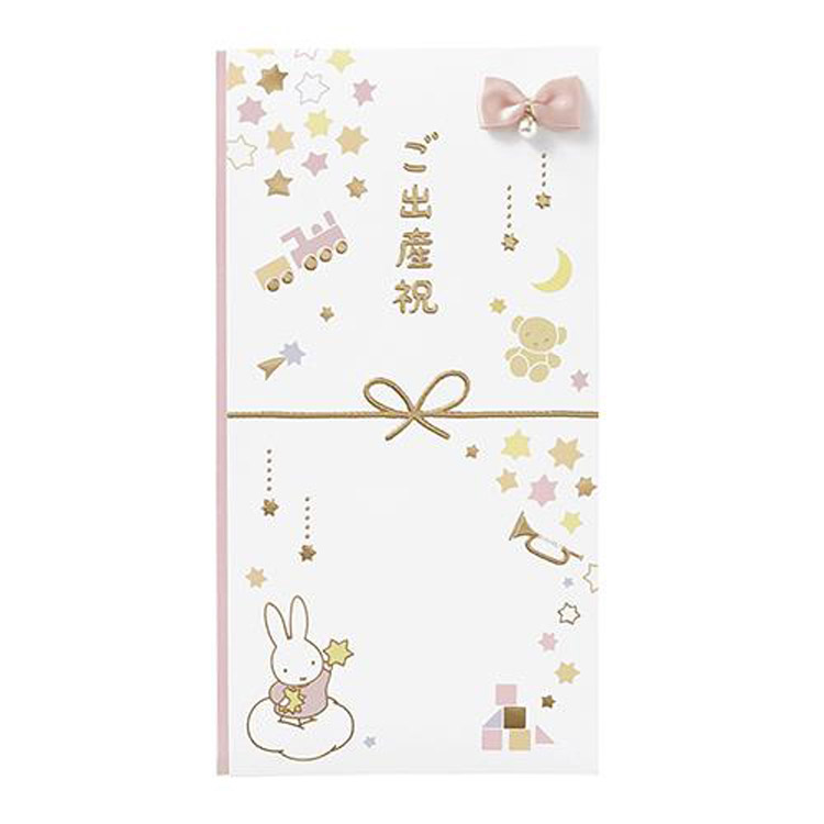 ミッフィーのかわいらしいイラストと箔押しの輝きがお祝いシーンを彩ります。