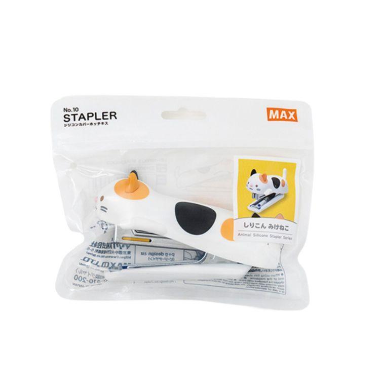 ・ねこをモチーフにした、シリコンカバーのかわいらしいホッチキス。