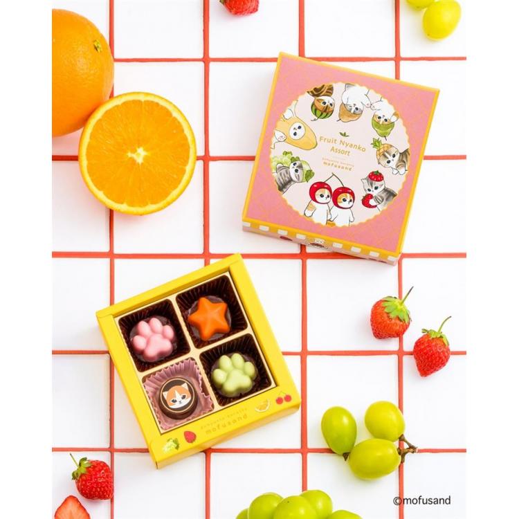 肉球型のフルーツ風味のショコラと、にゃんこの転写チョコレートをアソートしたショコラギフトです。