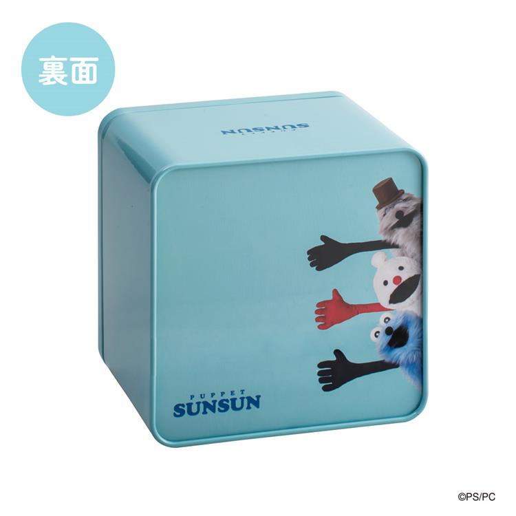 表面エンボス加工で立体感のあるテレビ型缶に、キャラメルスナック、ココアクッキー、2種のチョコクランチを詰め合わせました。
