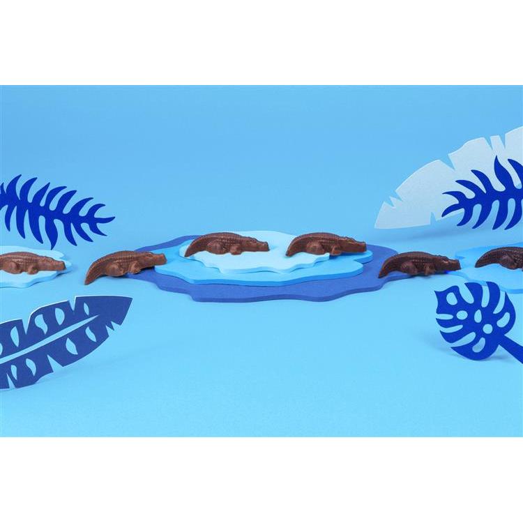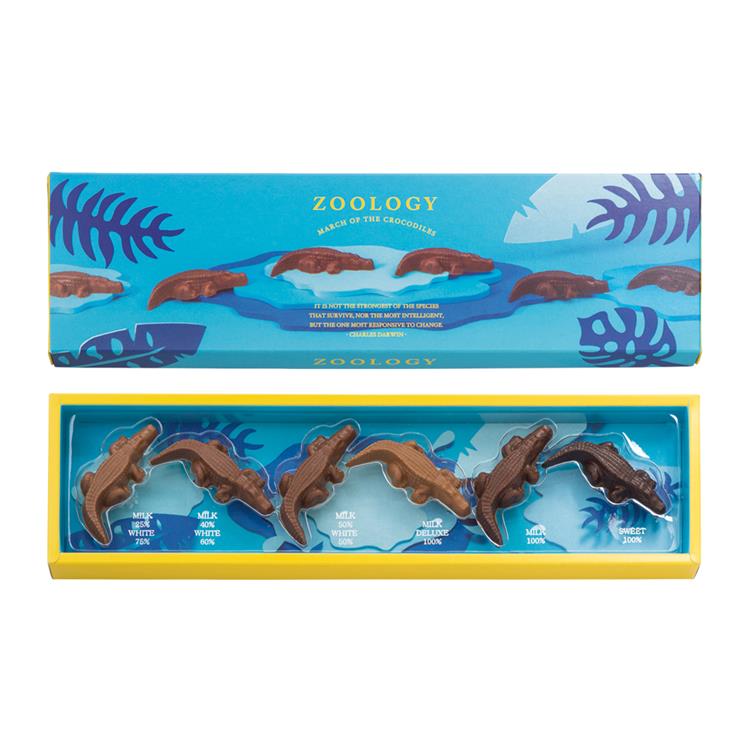 ぞろぞろと小さなワニたちが行進しているようなチョコレートセットです。