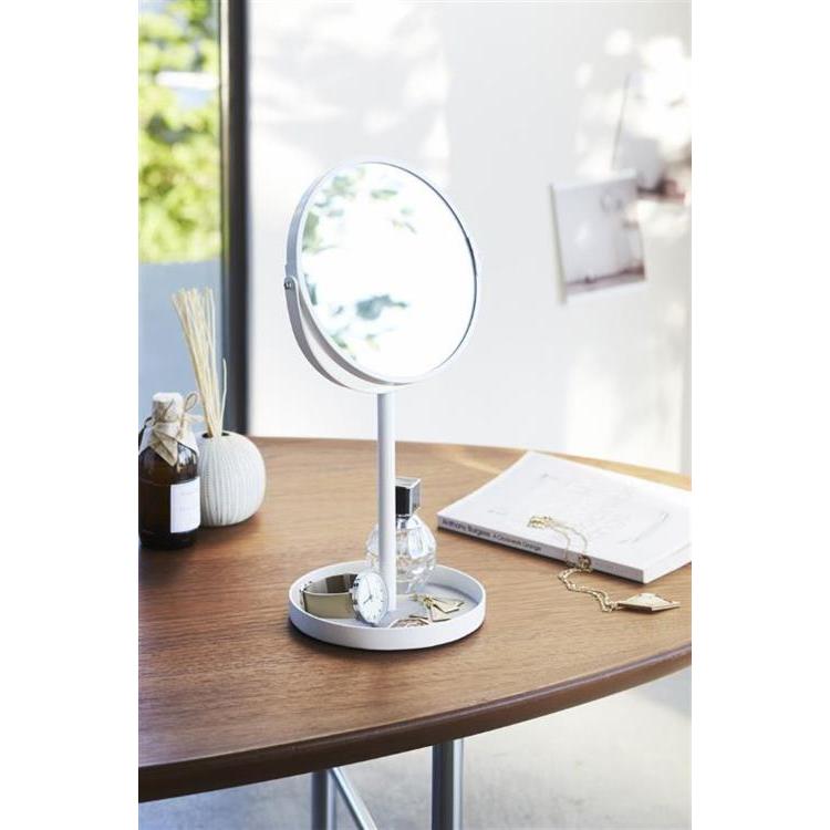 ディスプレイ感覚で収納できるトレイ付きスタンドミラー