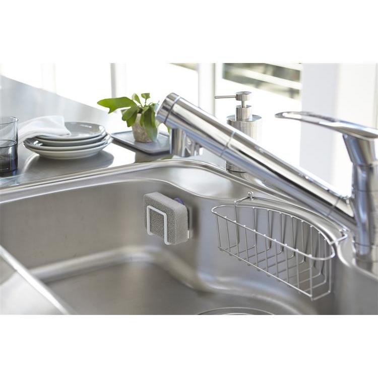 スポンジを挟んでそのまま収納。コンパクトサイズで、シンク内のスペースを取りません。
