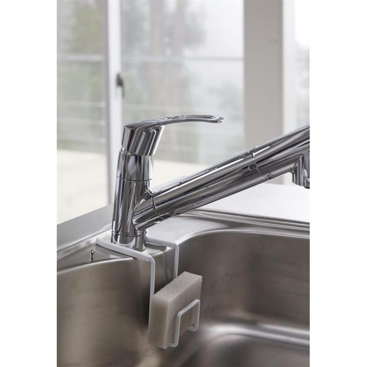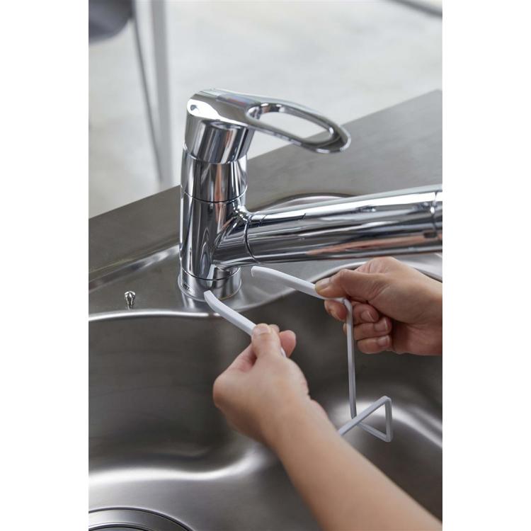 蛇口を挟みこむだけで簡単に設置できるスポンジホルダーです。