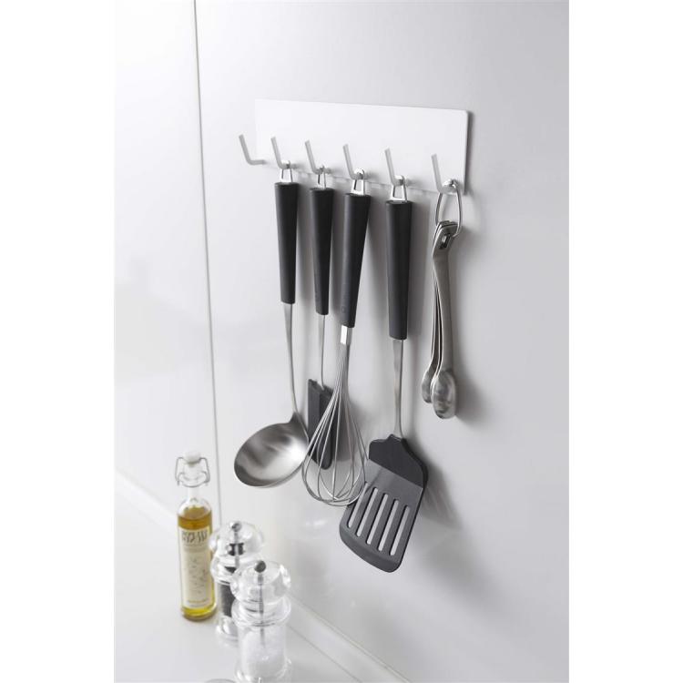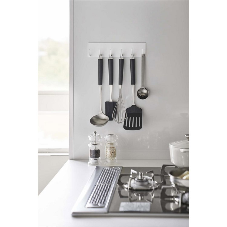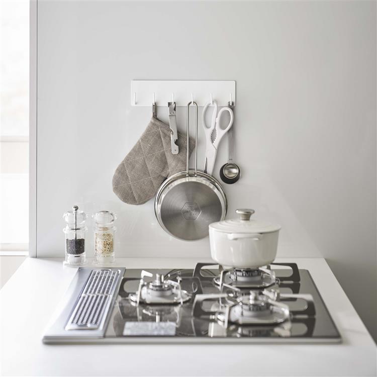 鍋つかみ、フライパン、計量スプーンなど、よく使うキッチンツールを掛けておくのに便利。