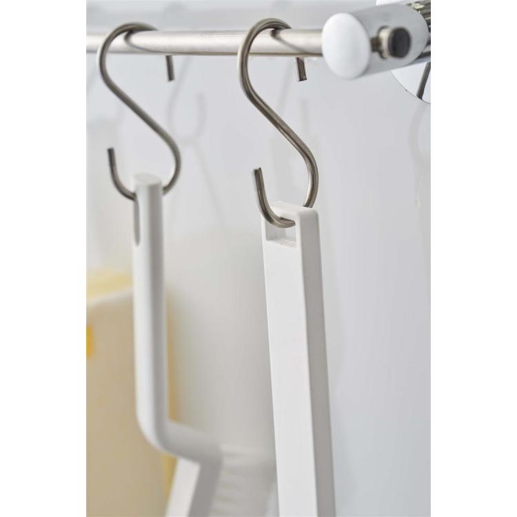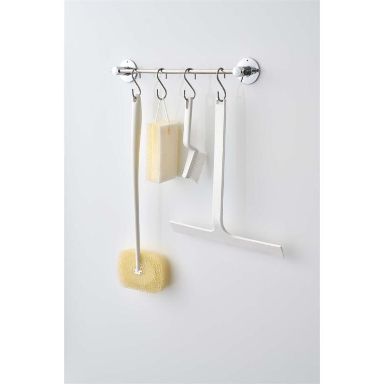 柄が長いから浴槽の底や天井、壁の高い位置にも使えます。フックにもかけられます。