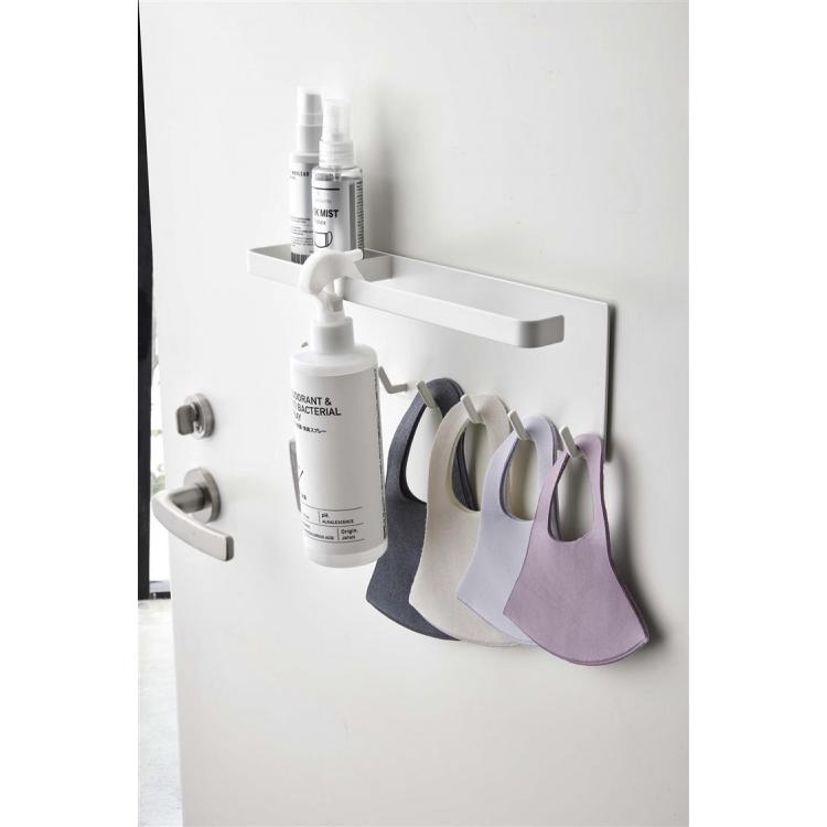 玄関扉に貼り付けてコンパクトに収納でき、お出かけの際にサッと準備できます。