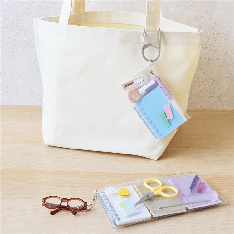 透明のポーチに入れて、バッグチャームとしても可愛く持ち運びができます。