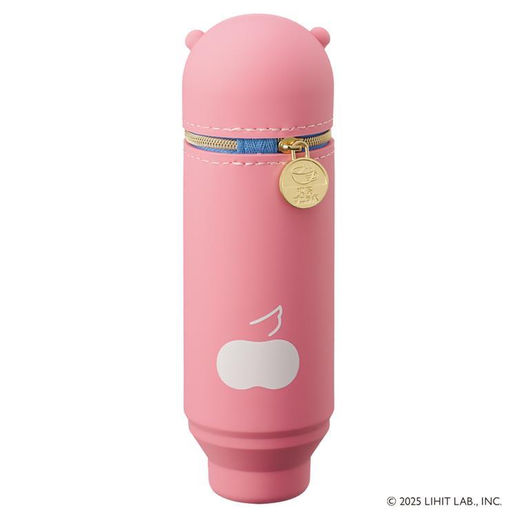 ファスナーを開けて本体を押し下げるとペンスタンドとして使用でき、フタ部分には消しゴムホルダーが付いてます。