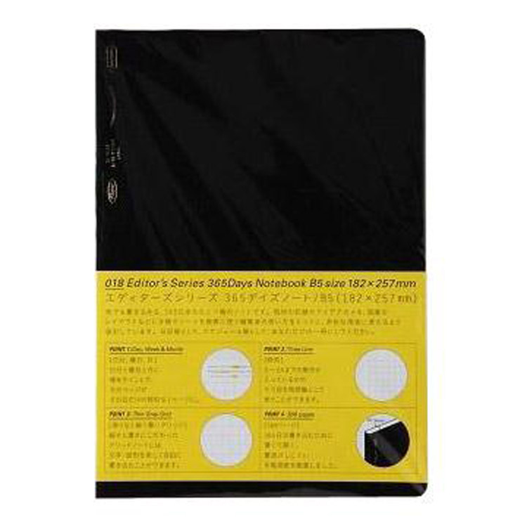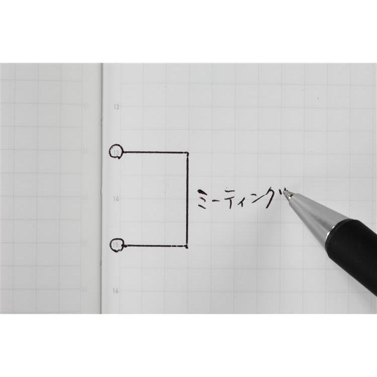 時刻を表す数字、日付と曜日、そしてグリッドを組み合わせた用途の幅広いノートです。