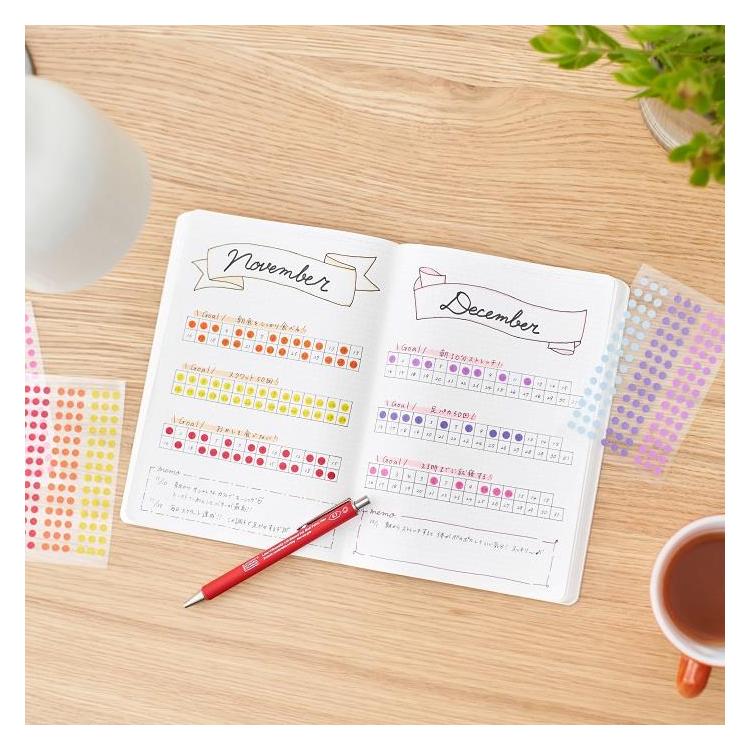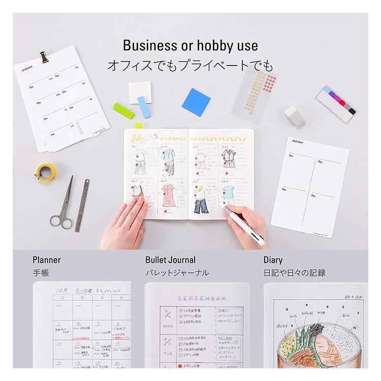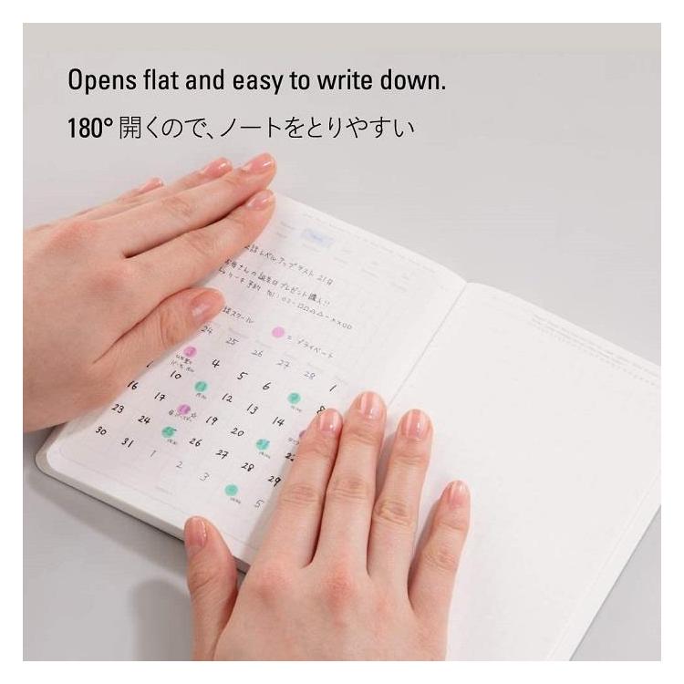 時刻を表す数字、日付と曜日、そしてグリッドという最低限の要素だけを載せたシンプルなノートなので、日記帳にもスケジュール帳やクロッキー帳にもなり、使う人の多彩な半年間を受けとめます。