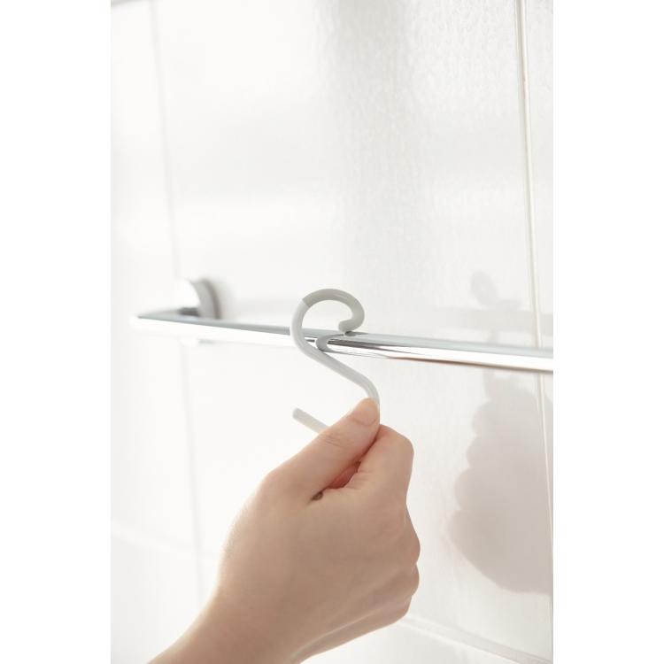 エスフックは、先端がフレキシブルに曲がり、モノを掛けたり取ったりする時もバーからはずれにくいS字フックです。