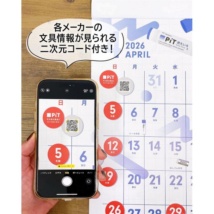 文房具にまつわる記念日を掲載し、各ページにある二次元バーコードを読み込むとそのメーカーの文房具情報を見ることができます♪