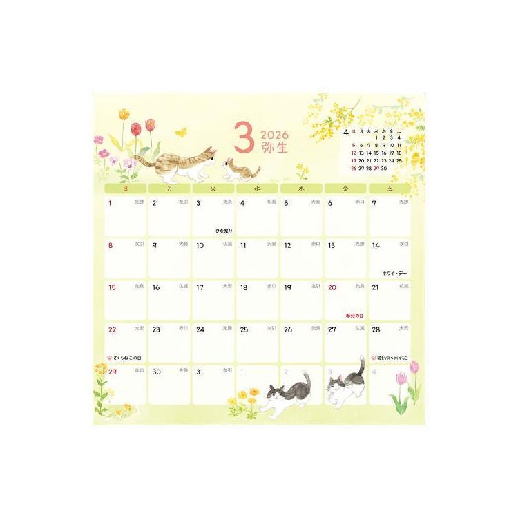 - 2026年1月始まり 壁掛け 猫の記念日がわかるカレンダー ねころび