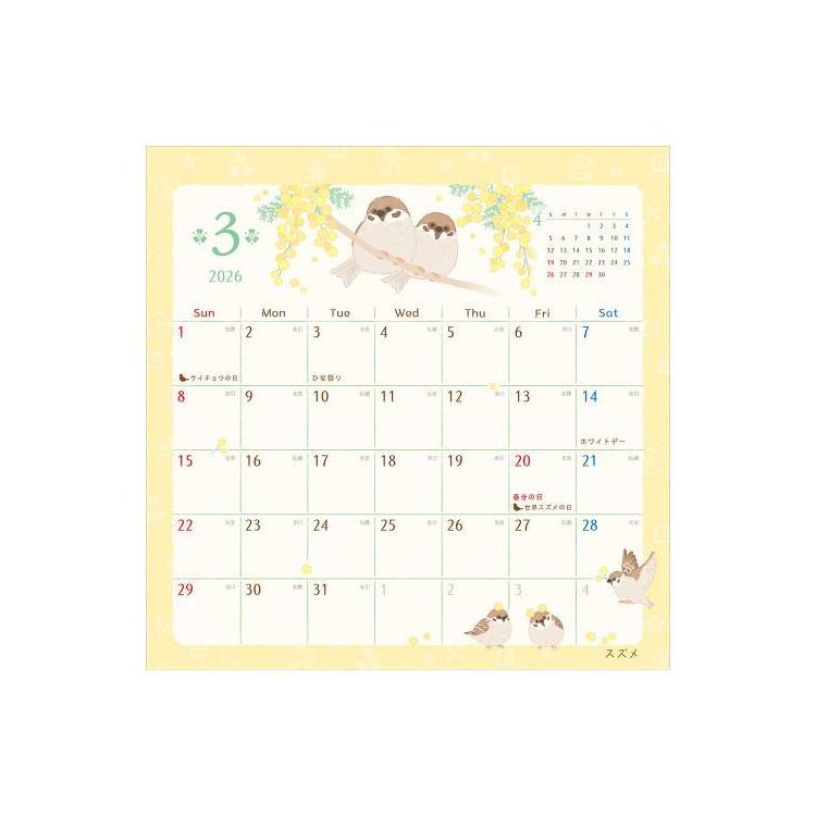 - 2026年1月始まり 壁掛け 鳥の記念日がわかるカレンダー さえずり