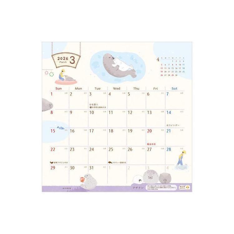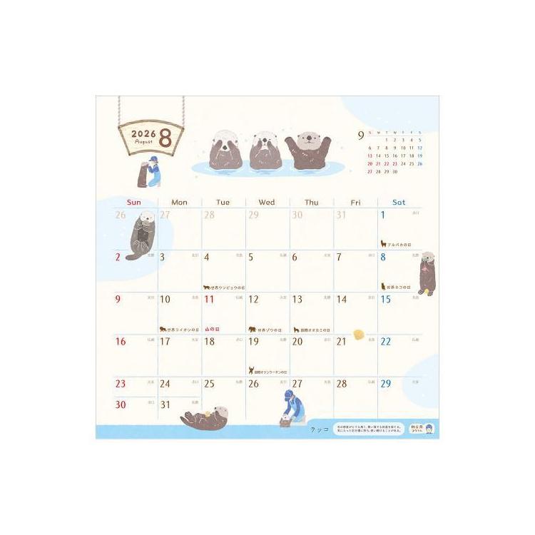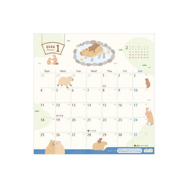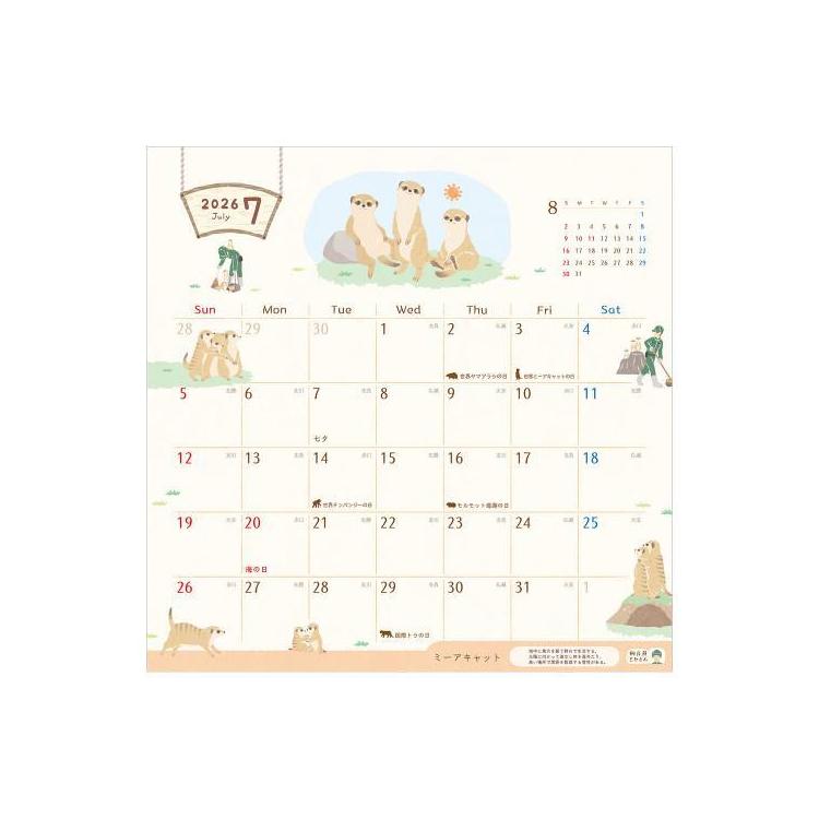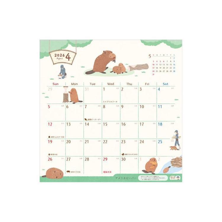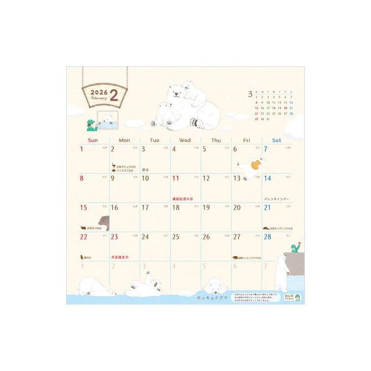 - 2026年1月始まり 壁掛け 動物の記念日がわかるカレンダー ズームインアニマル