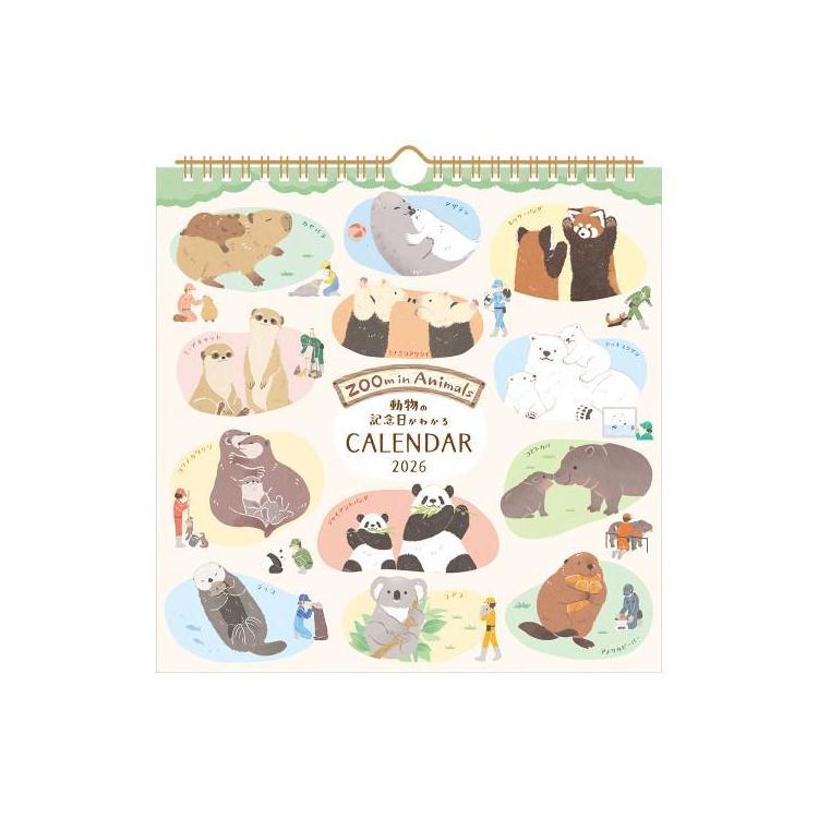 2026年1月始まり 壁掛け 動物の記念日がわかるカレンダー ズームインアニマル