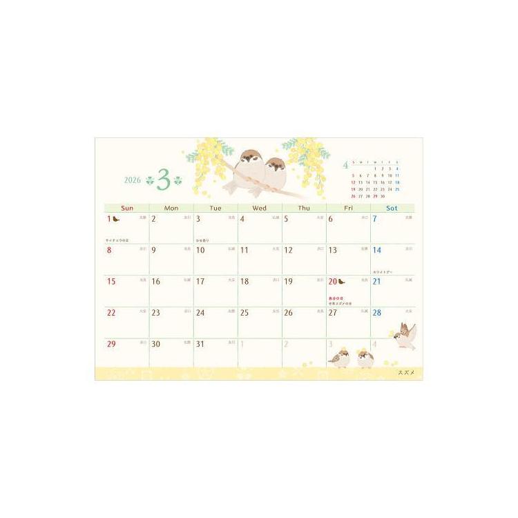 - 2026年1月始まり 卓上 鳥の記念日がわかるカレンダー さえずり
