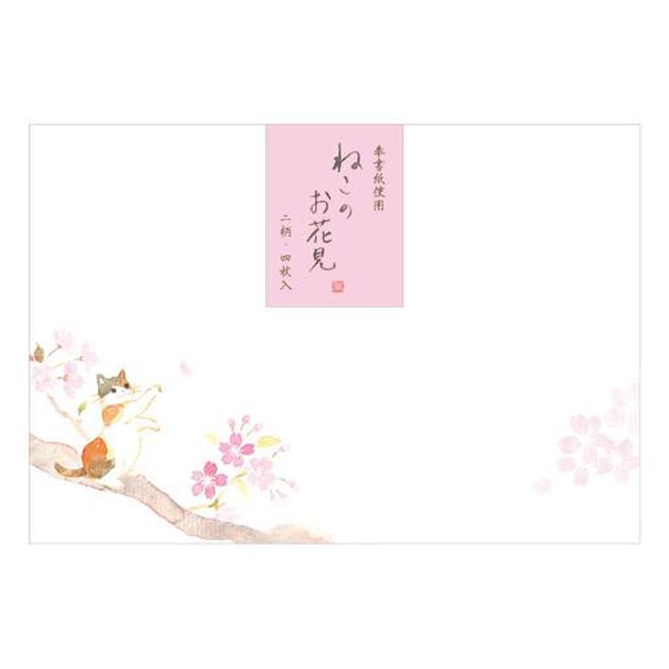 水彩でねこや花を描いた穏やかでやさしい雰囲気が広がる春柄封筒。