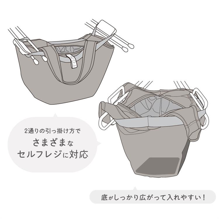 さらにセルフレジで使用する際には、本体外側のテープをバーに引っ掛けて使用することができます。