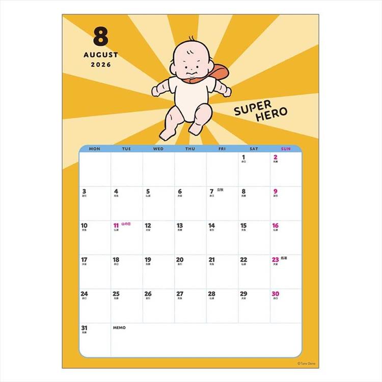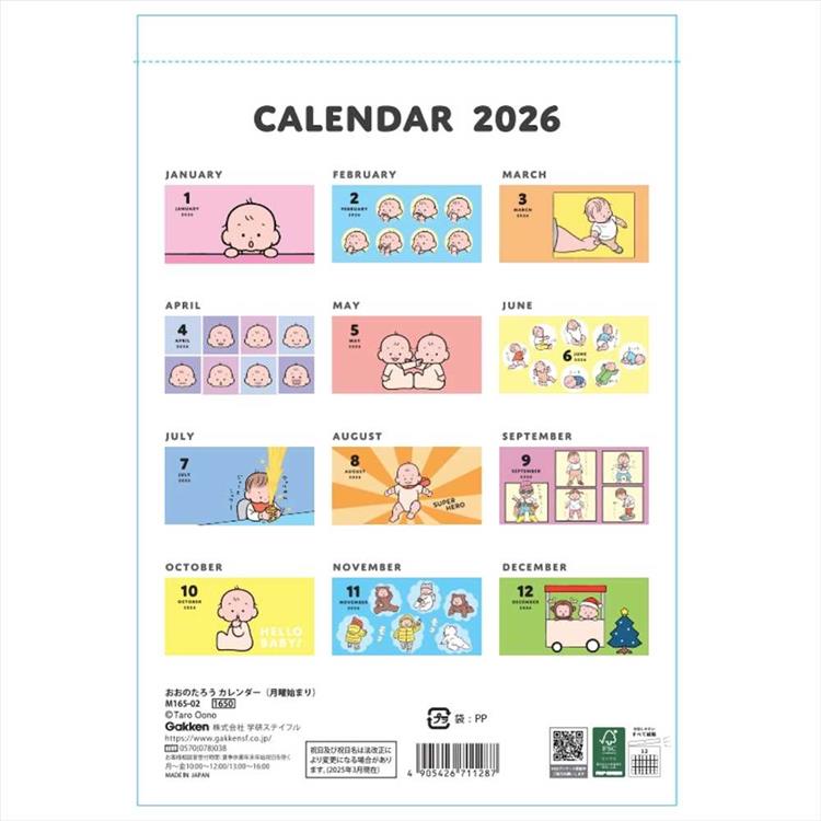 人気イラストレーター「おおのたろう」さんによる、赤ちゃんをモチーフにした2026年壁掛けカレンダーです。