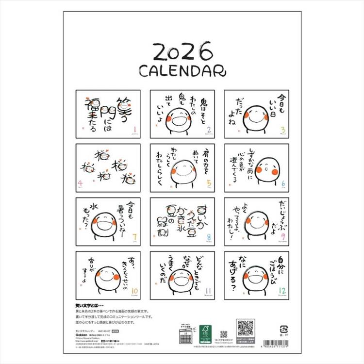 満面の笑顔が心穏やかになる笑い文字の壁掛けカレンダー