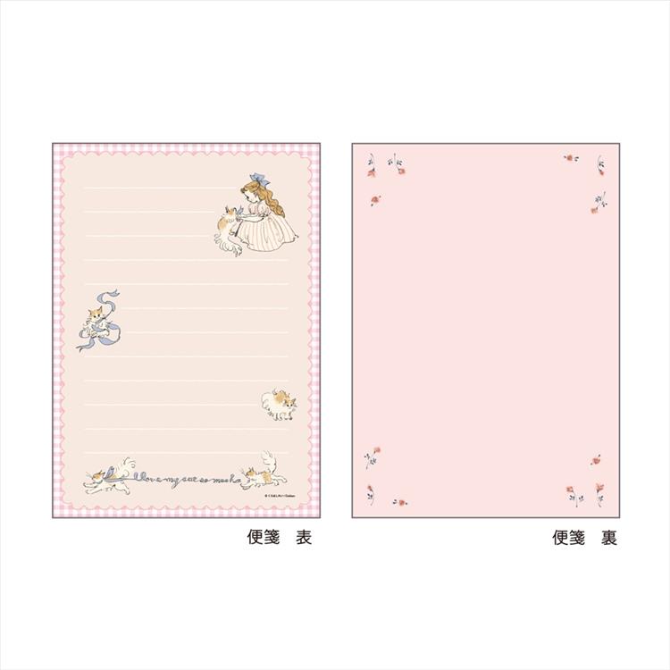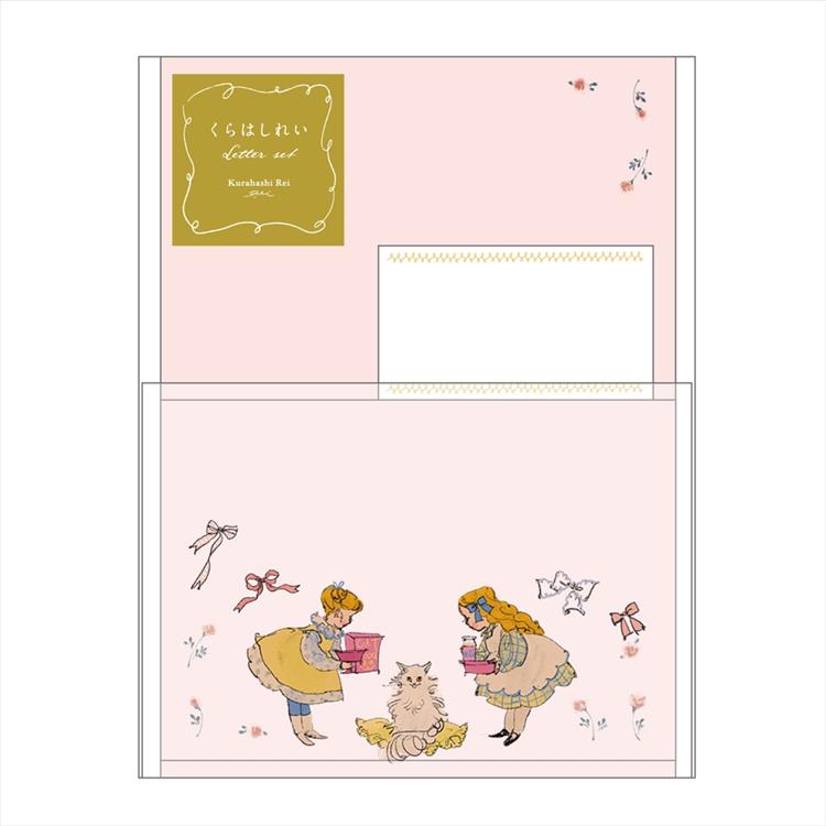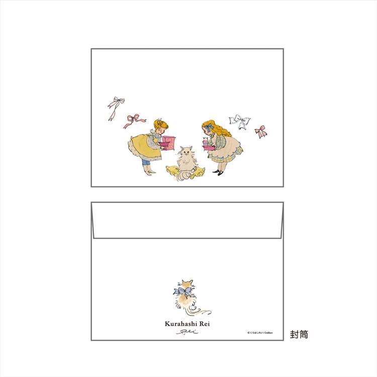 トレーシングペーパーの封筒にくらはしれいさんのイラストをあしらい、やさしい色合いの便箋がふんわりと透けて見えるデザインです。