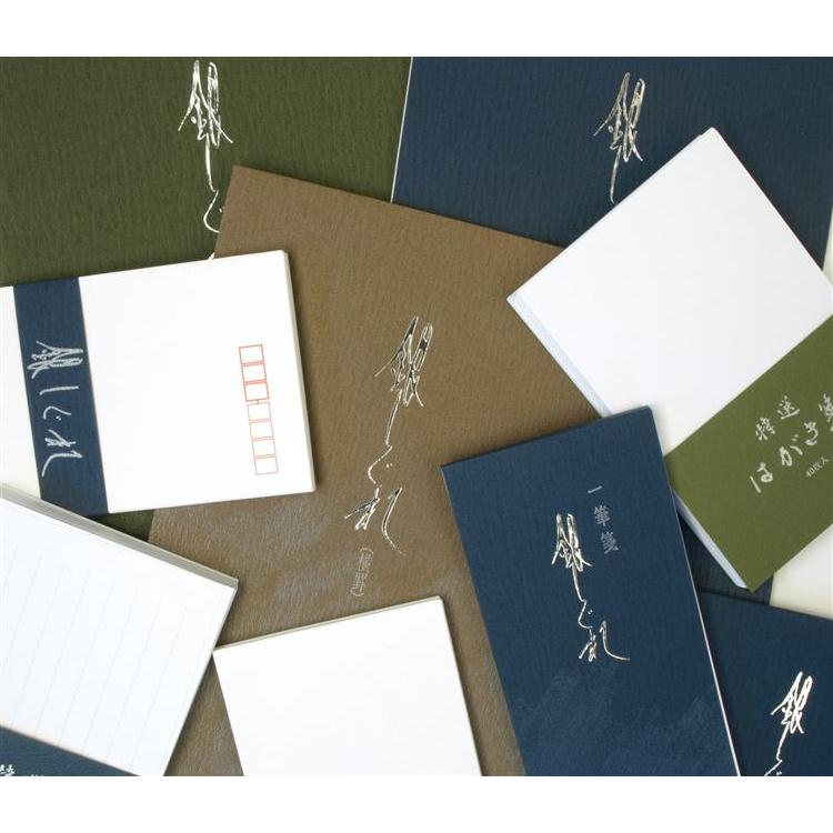 光沢のあるアクリル繊維が入った上質紙、銀松葉紙を使用した便箋です。アクリルにのったインクの風合いが楽しめます。
