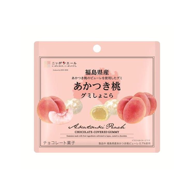 福島県のあかつき桃のピューレを使用したグミをホワイトチョコレートでコーティングしました。