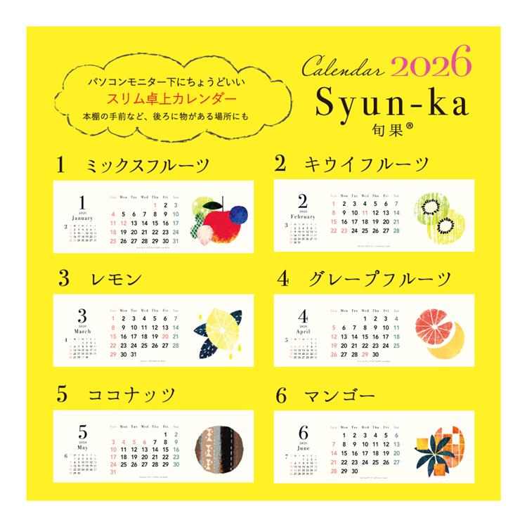 - 2026年1月始まりカレンダー 卓上 PC トモコハヤシ 旬果