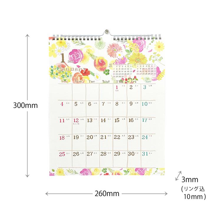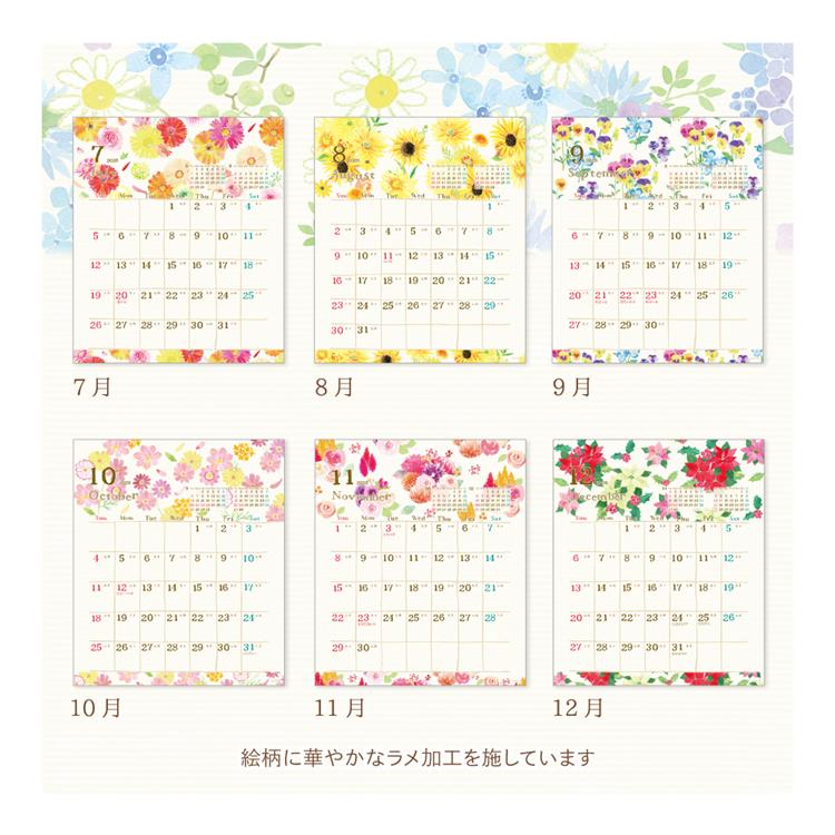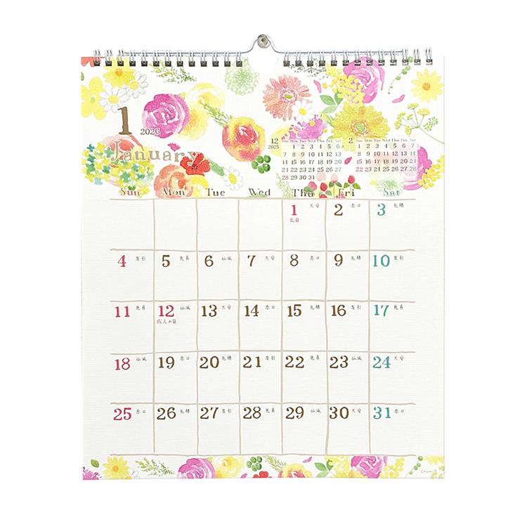 - 日曜始まり・12枚綴り・リング仕様・六曜表記 ※絵柄にラメ加工をしています。