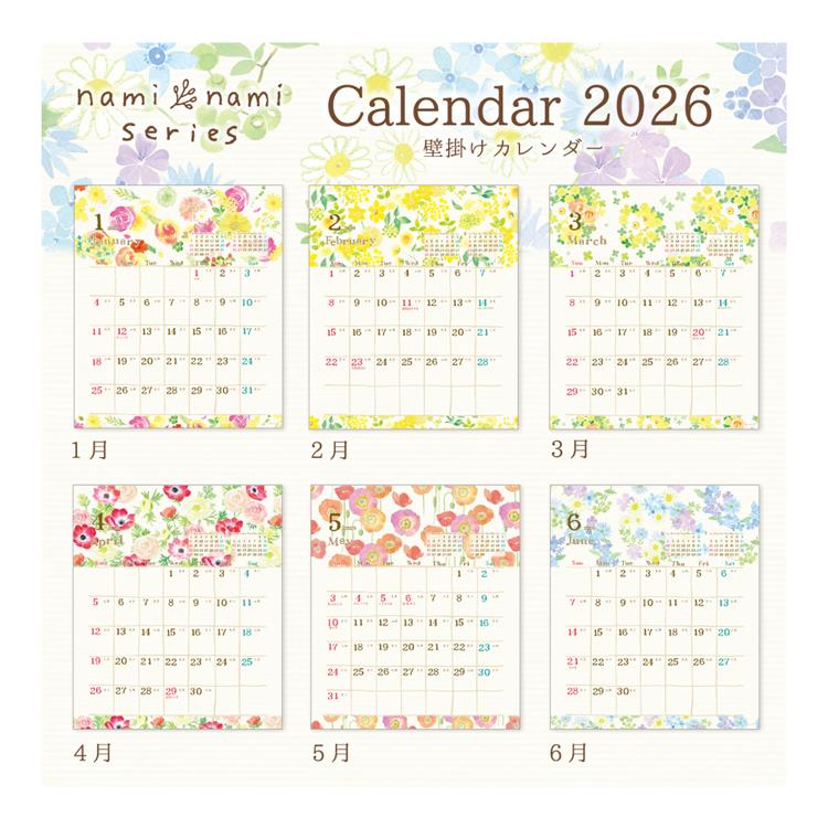 2026年1月始まりカレンダー 壁掛け ナミナミ