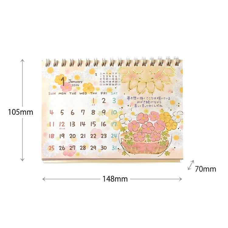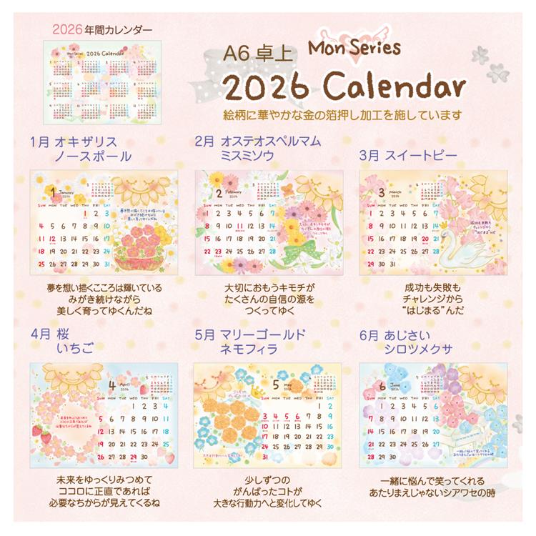 - 2026年1月始まりカレンダー 卓上 A6 もん