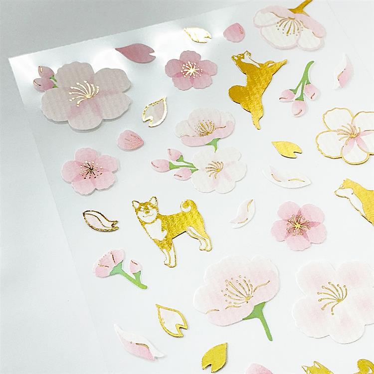 和紙素材でできた、さくらの花と動物モチーフの春柄シールです。