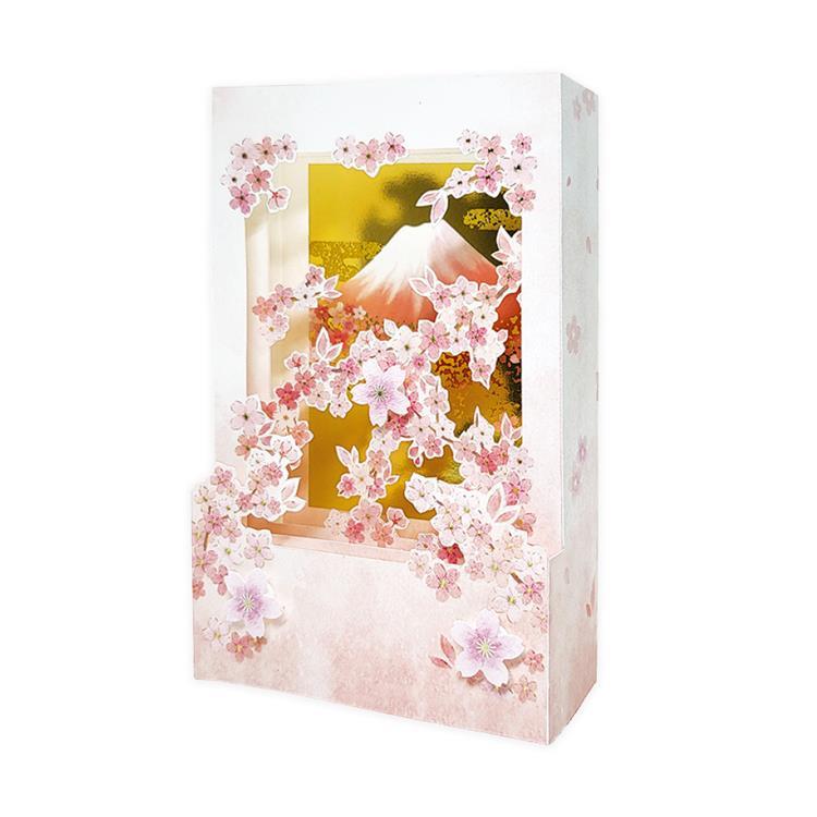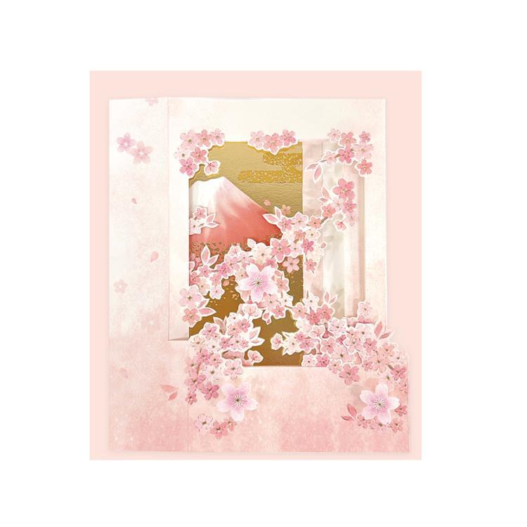 カードを開くと立体モチーフが立ち上がり、華やかな桜の情景が広がります。