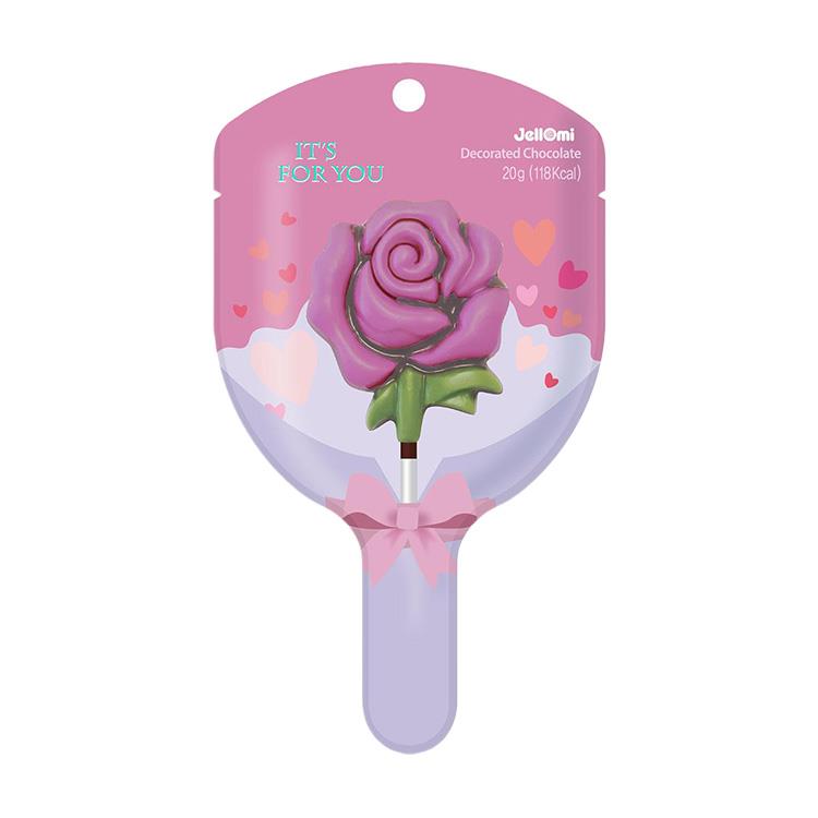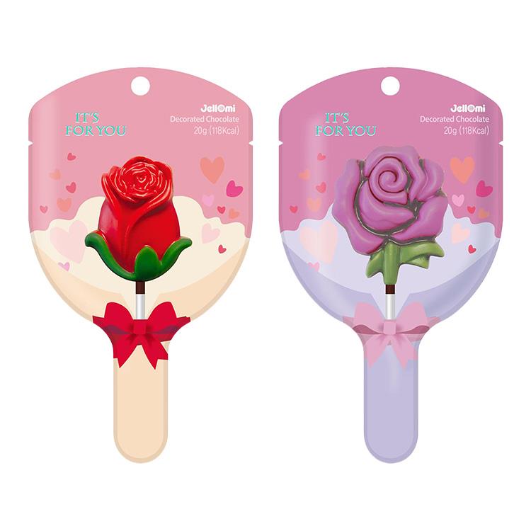 赤とピンクのバラの形をしたかわいいロリポップチョコレートです。