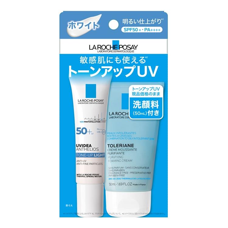 敏感肌*にも使えるラ ロッシュ ポゼのトーンアップUVのホワイト色に、トレリアンフォーミングクレンザーのたっぷり50mLサイズをお付けしたキット品です。