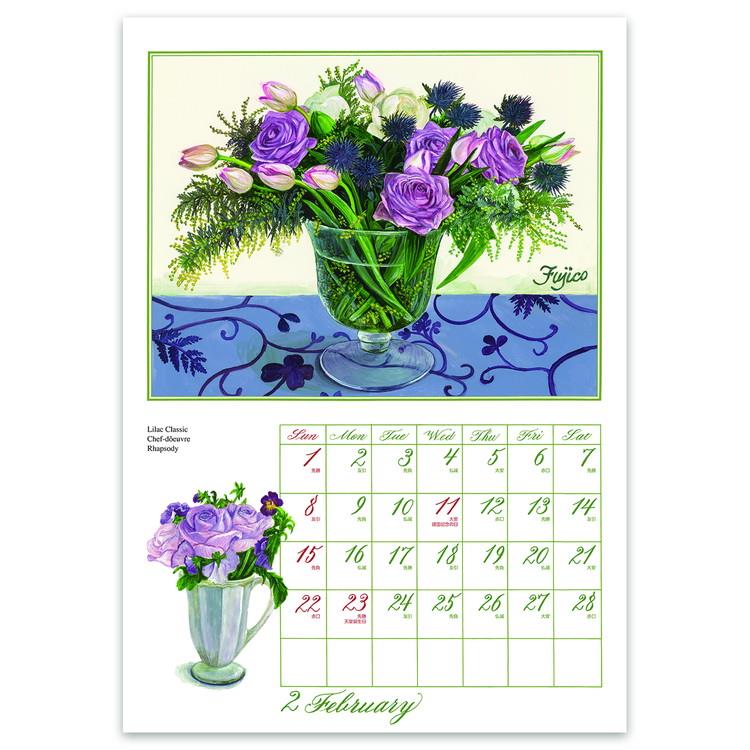 花器に挿したバラたちの絵が1枚の月に2つ描かれていて華やかさは抜群です。