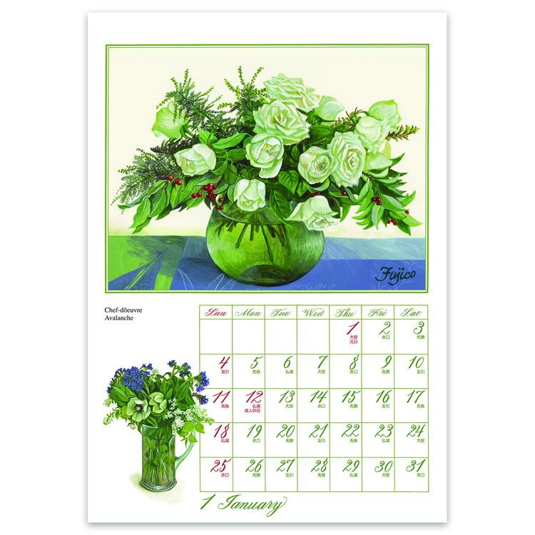 2026年1月始まりカレンダー 壁掛け S 橋本不二子 Roses