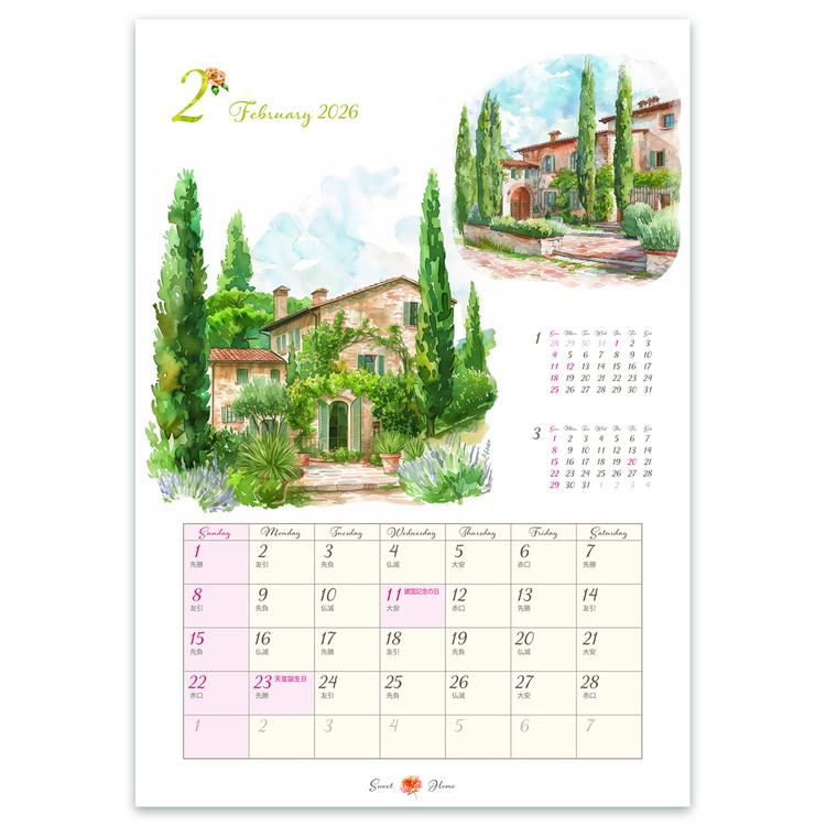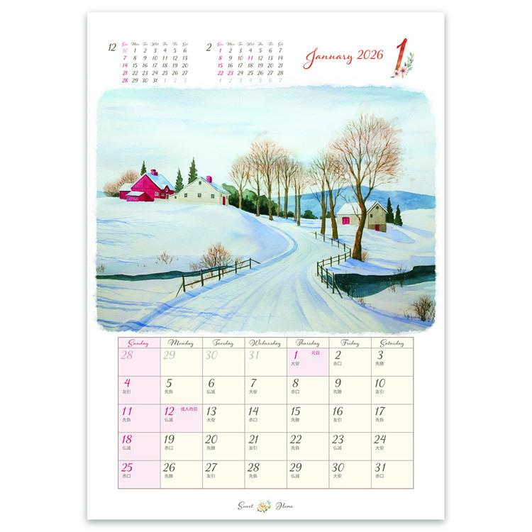 2026年1月始まりカレンダー 壁掛け S スイートホーム