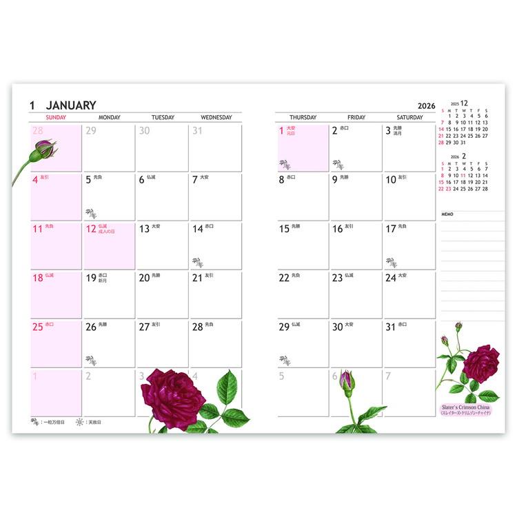 各ページにその月のバラの名前が記されたバラ愛好家も納得の内容です。