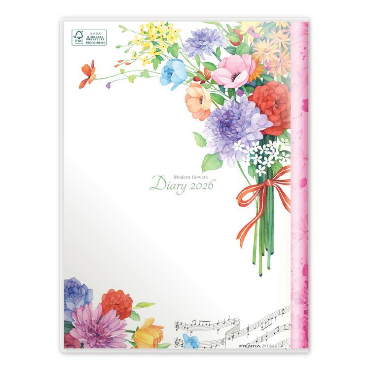 2025年12月始まり手帳 月間 A5 モダンフラワー ピンク