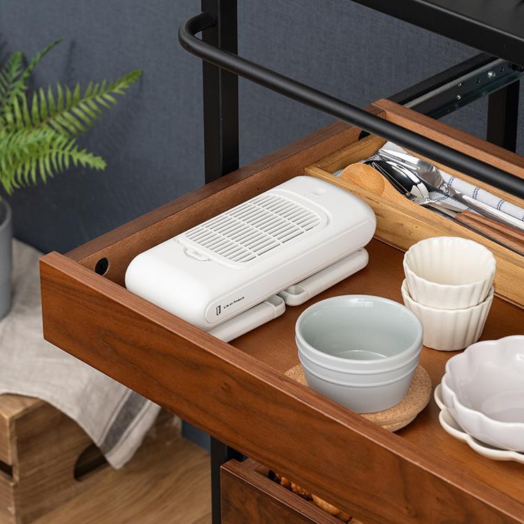 充電式のため置き場所を選ばず、持ち運びにも便利な仕様です。
