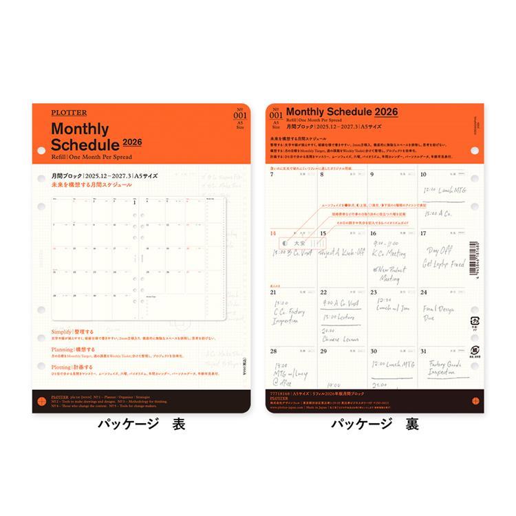 2025年12月始まりシステム手帳用リフィル A5 月間 プロッター